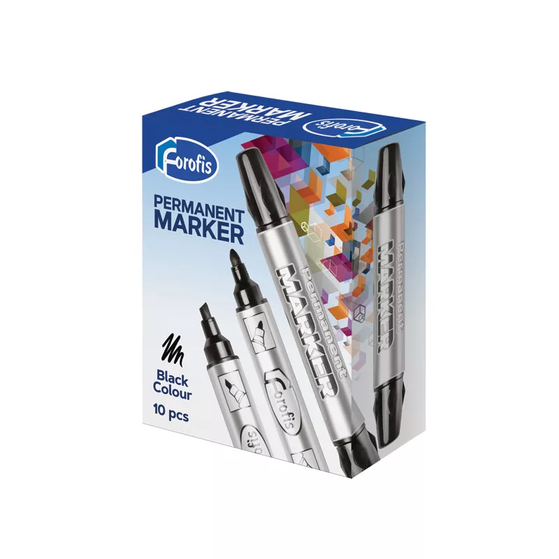 Alkoholos marker, kétféle hegyű, kerek és vágott hegy, Forofis, fekete