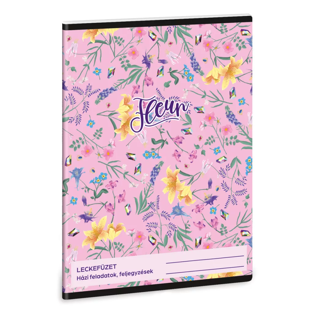 • A/5 méretű leckefüzet borítóján virágos grafikával