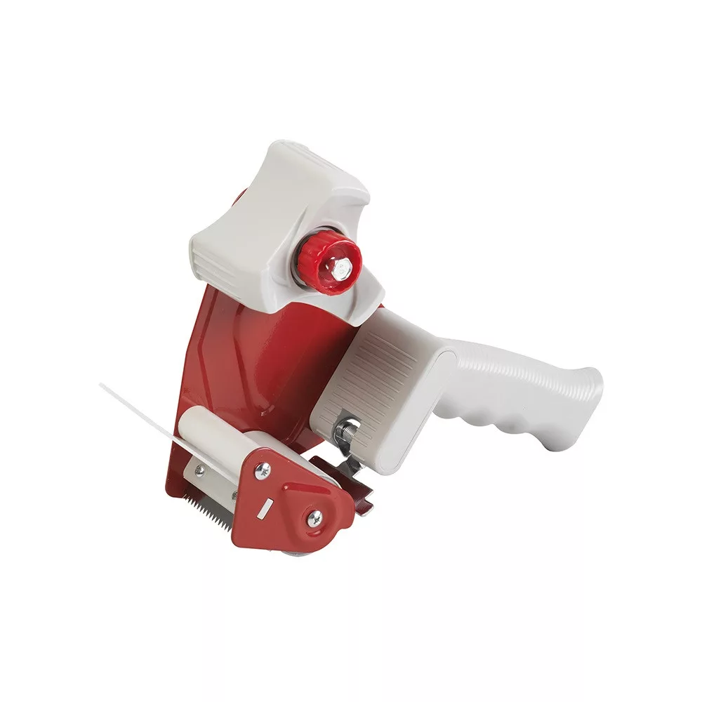 Erős, strapabíró készülék állítható fékrendszerrel, általános csomagzáró szalagokhoz. 45-50mm széles és 50-66méter hosszúságú szalagokhoz ajánljuk. Ragasztószalag adagoló. Katalóguskód: 2201