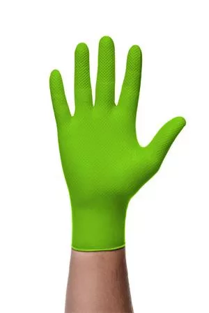 Védőkesztyű, egyszer használatos, nitril, M méret, 50 db, púder nélküli, gyémánt textúrált megerősített, zöld