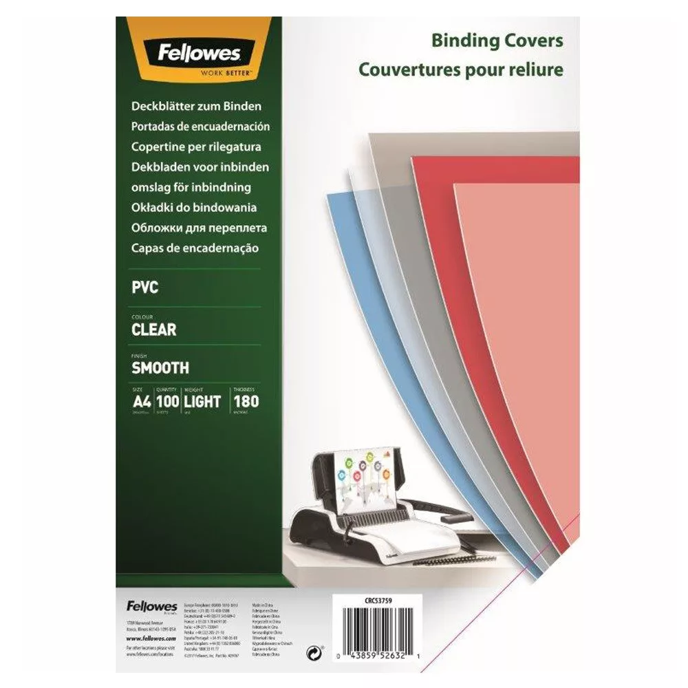 Előlap, A4, 180 mikron, 100 db/csomag, Fellowes® víztiszta