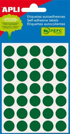 Etikett, 13 mm kör, kézzel írható, színes, APLI, zöld 175 etikett/csomag