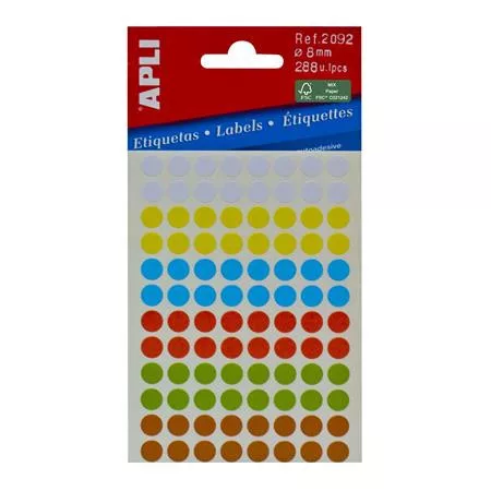 Etikett, 8 mm, kör, kézzel írható, színes, APLI, vegyes színek, 288 etikett/csomag