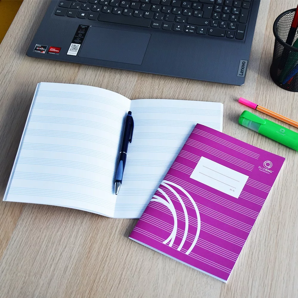 Minőségi A5 méretű 16 lapos iskolai tűzött füzetek, amelyek famentes fehér, 70gr/m2 ofszet papírból készültek. Borító alapanyaga 170gr/m2.