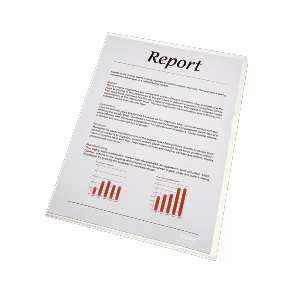 Kiváló minőségű genotherm dokumentumok kényelmes tárolásához, mindennapos használatra. Víztiszta, 75 mikron vastag, újrahasznosítható PP alapanyag. Könnyű hozzáférés a dokumentumokhoz a fedőlap oldalsó részén található félkör alakú mélyedésnek köszönhetően. Felül és jobb oldalon nyitott. A4 mérethez. Katalóguskód: 54810