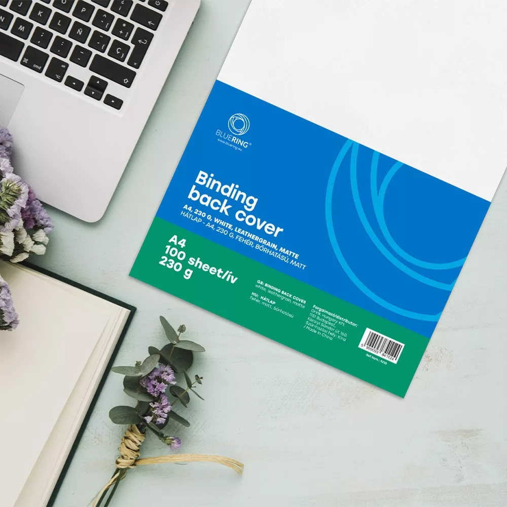 Hátlap, A4, 230 g. bőrhatású 100 db/csomag, Bluering® fehér