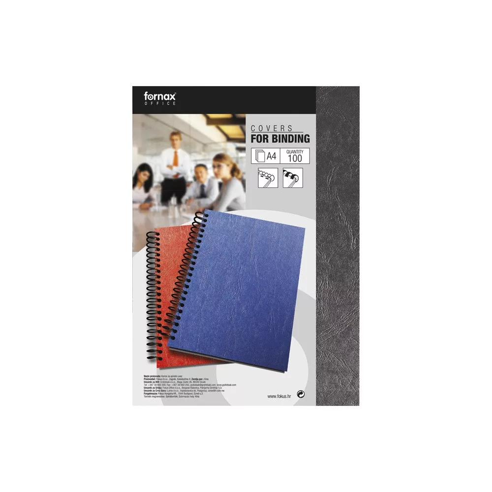 Hátlap, A4, 250 g. matt bőrhatású 100 db/csomag, Fornax, fekete