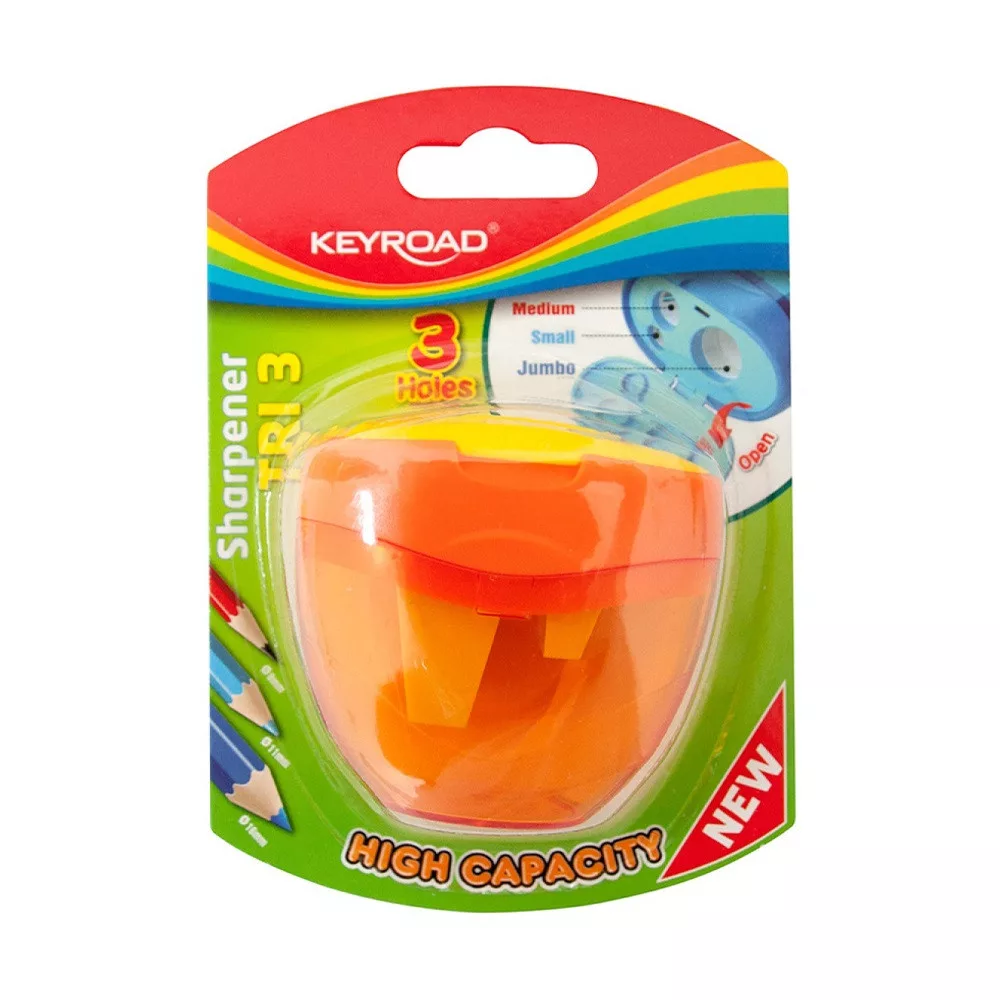 Hegyező 3 lyukú tartályos, fedeles Keyroad Tris vegyes színek