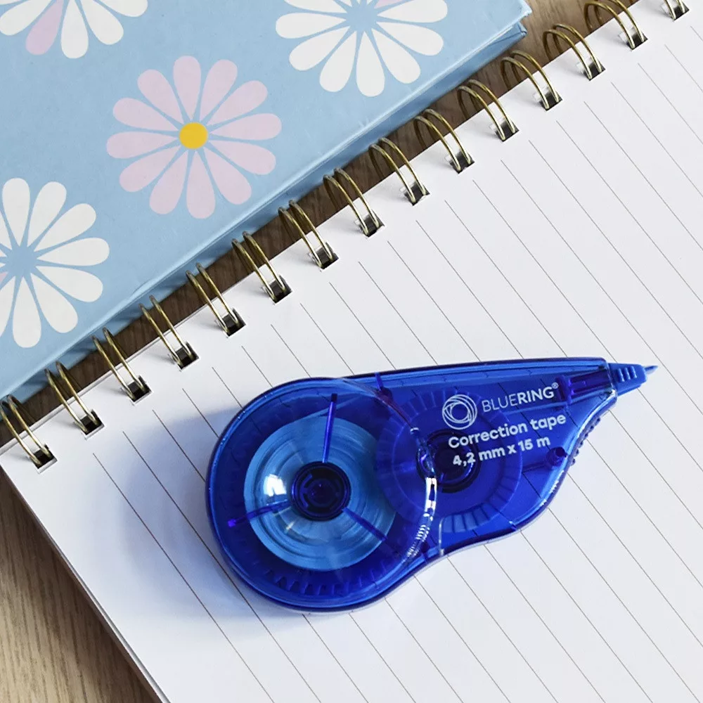 BLUERING hibajavító roller kézbe illő ergonomikus design. Könnyed, precíz javításokat tesz lehetővé a jobb és balkezes felhasználóknak egyaránt. Nagy szakítószilárdságú ultravékony PET-hordozón fehér hibajavító „festék” található, amely azonnal újraírható. Automatikus a szalagfeszesség. méret: 4,2mmx15m12db/gyűjtő360 db/karton Katalóguskód: 12187