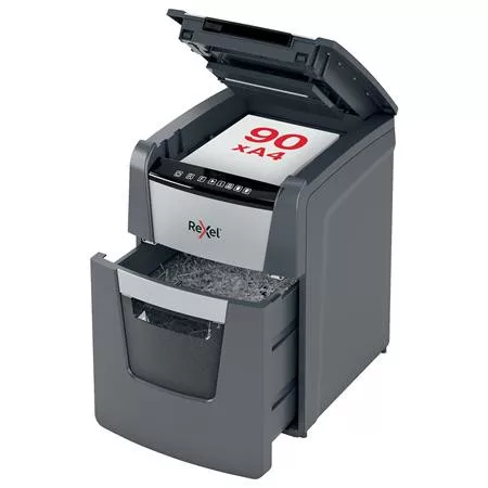 Nincs szükség a lapok kézi adagolására, a tűző- vagy gemkapcsok eltávolítására, a REXEL Optimum Autofeed+ iratmegsemmisítő elvégzi Ön helyett a munkát! -egyszerre akár 90 lap (A4, 80 g/m2) automatikus adagolása -kézi lapadagoló nyílás max. 8 lap számára -P-4 konfetti vágás (4x28mm) -34L-es, kihúzható hulladéktartály -anti-jam / elakadásmentes technológia -bankkártyát, tűzőkapcsot és gémkapcsot is megsemmisít -működési idö: 20/45 -érintőkijelzős kezelőpanel -rendkívül halk működés, 55dbA zajszint -infravörös tartálytelítettség-érzékelő -2 év garancia, 2 év vágókés garancia