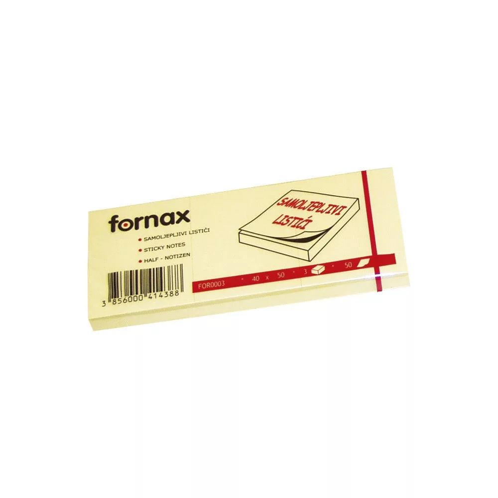 Jegyzettömb öntapadó, 40x50mm, 100lap, 3 tömb/csomag, Fornax, sárga