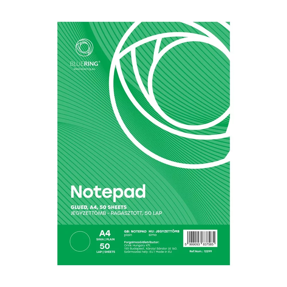 Jegyzettömb ragasztott, A4, 50lap, Bluering® sima