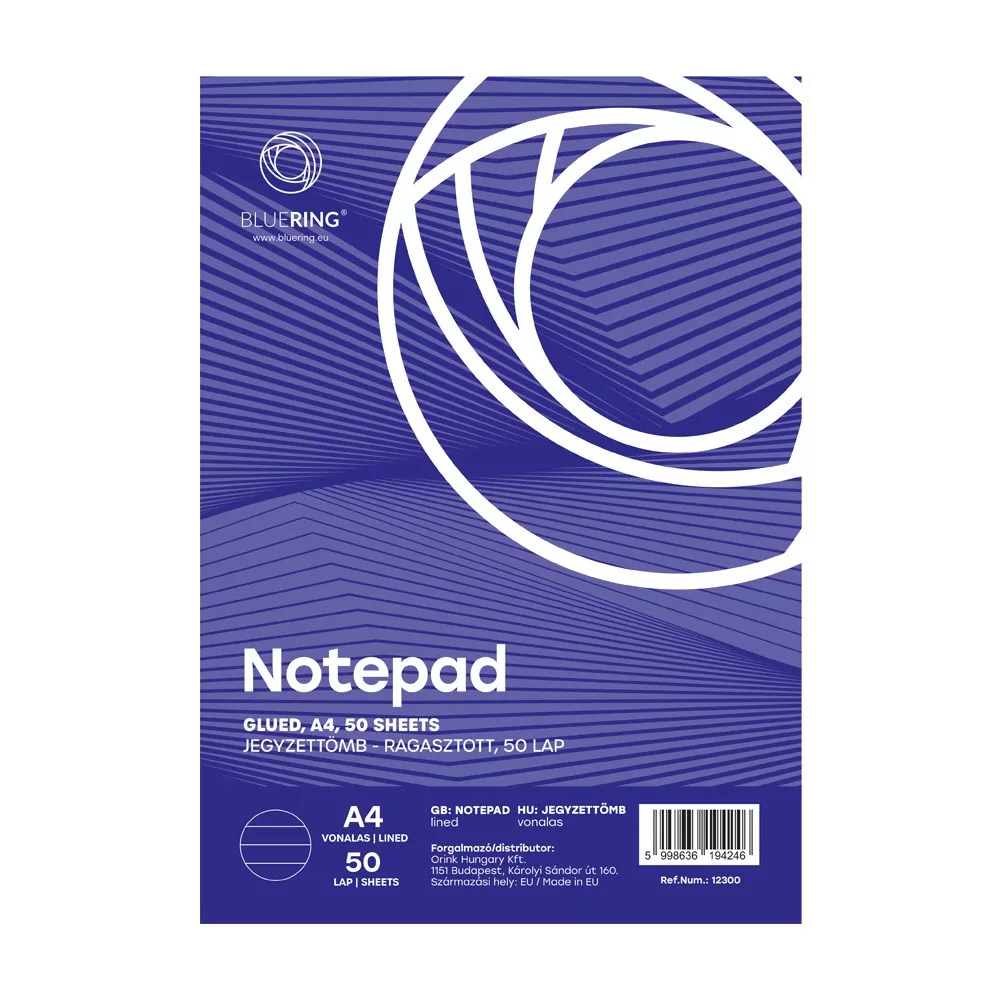 Jegyzettömb ragasztott, A4, 50lap, Bluering® vonalas