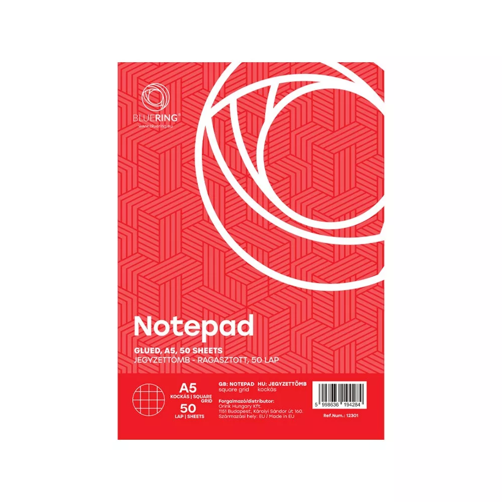 Jegyzettömb ragasztott, A5, 50lap, Bluering® kockás