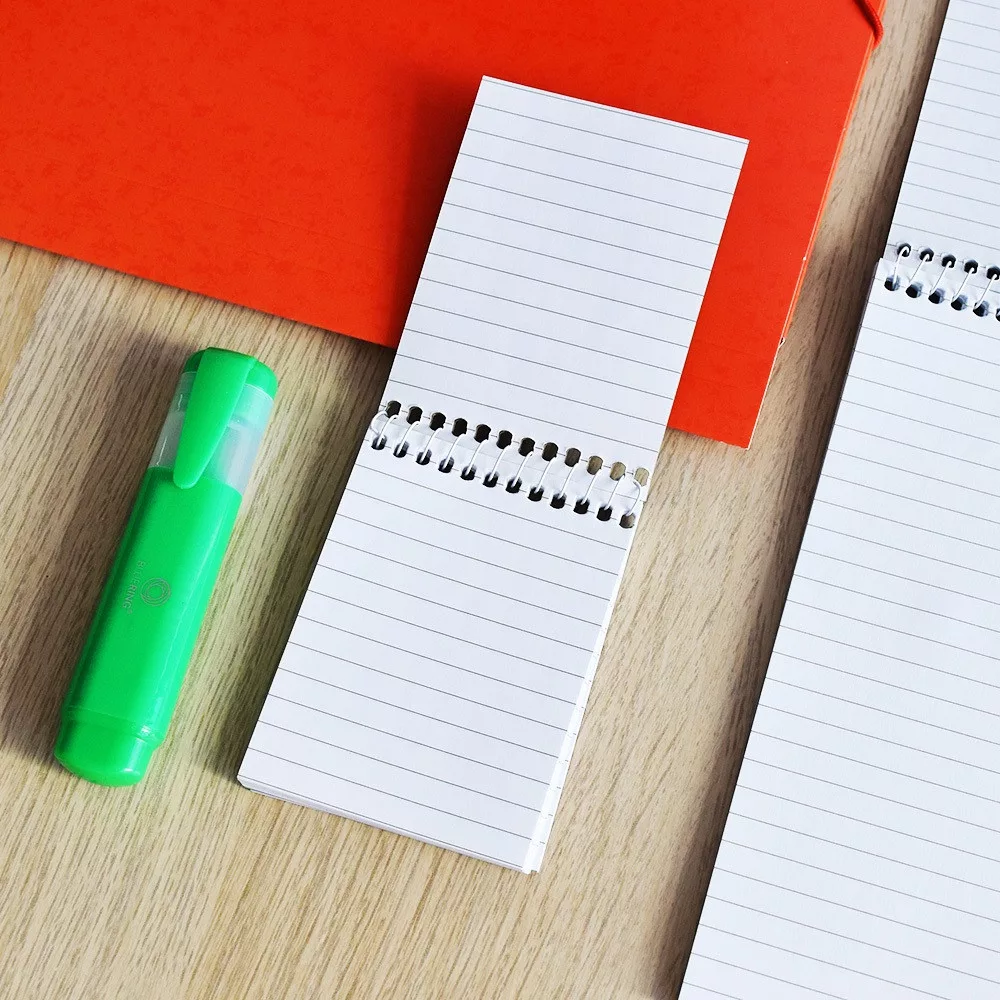 • Fehér, fém spirál: Az erős, egyszálas fehér fém spirál stabilitást ad a jegyzetfüzetnek, így az könnyen nyitható és lapozható, miközben biztosítja a hosszú élettartamot.
