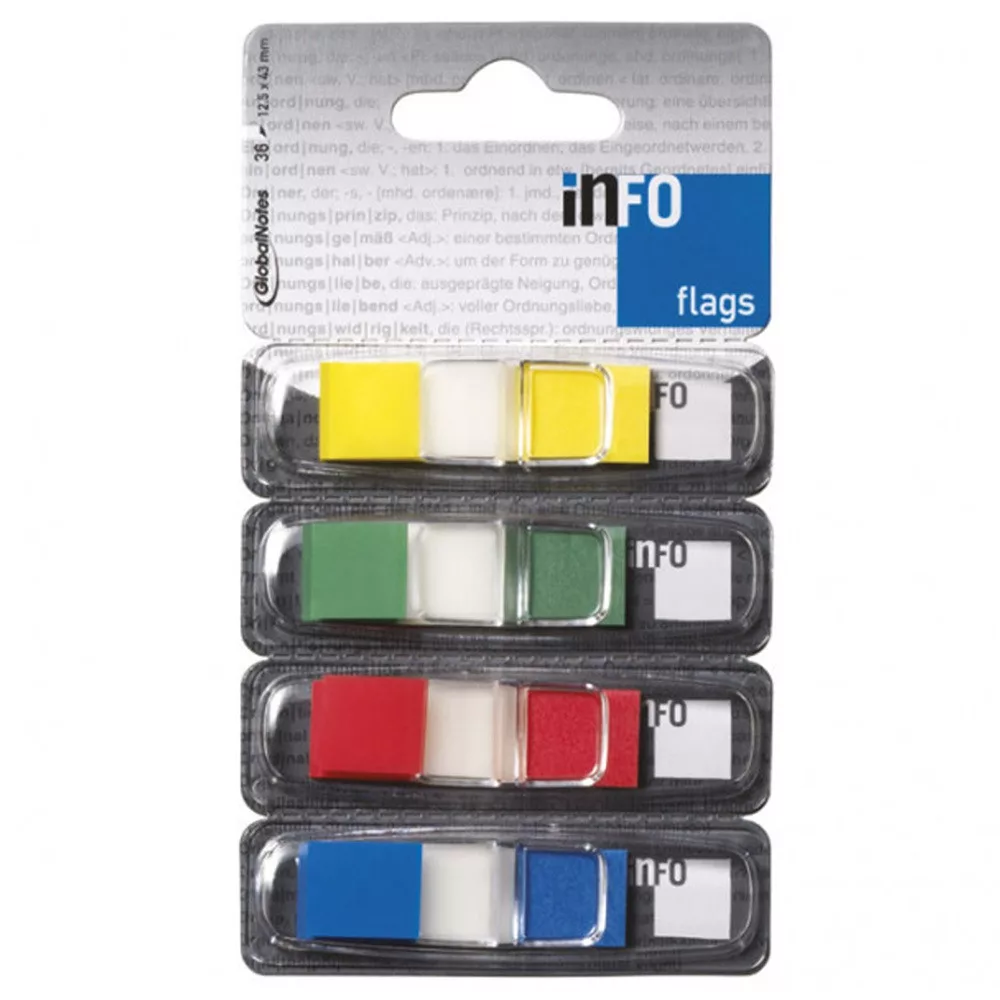 Jelölőcímke 12,5x43mm, 4x36lap, műanyag, Info Notes (4BBD) transzparens, 4 klf. szín