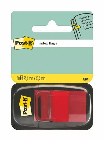 Jelölőcímke, műanyag, 50 lap, 25x43 mm, 3M POSTIT, piros