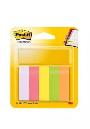 Jelölőcímke, papír, 5x100 lap, 15x50 mm, 3M POSTIT, vegyes