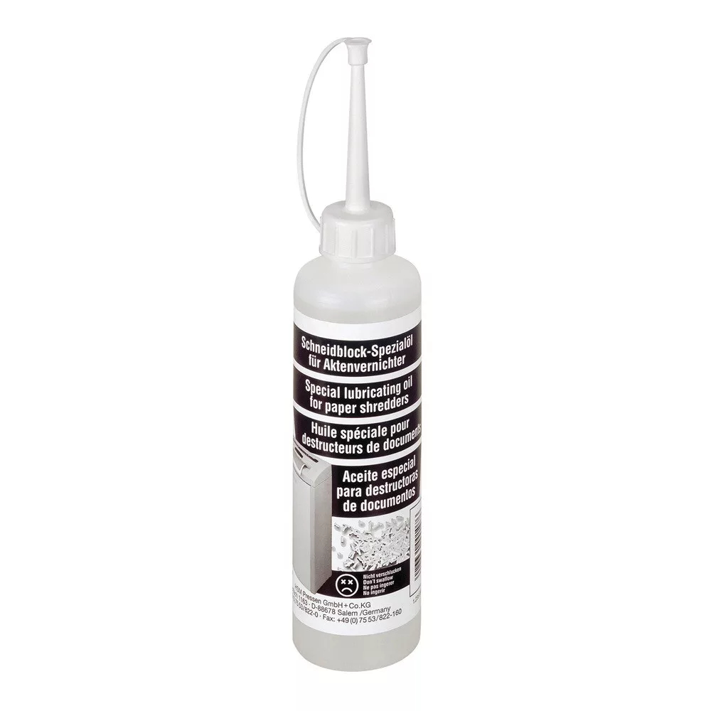 A HSM karbantartó olaj rendszeres, használattól függő, heti/havi használatával, elkerülhetők a papírpor okozta meghibásodások és jelentős mértékben megnövelhető az iratmegsemmisítő életartama. Katalóguskód: 11715