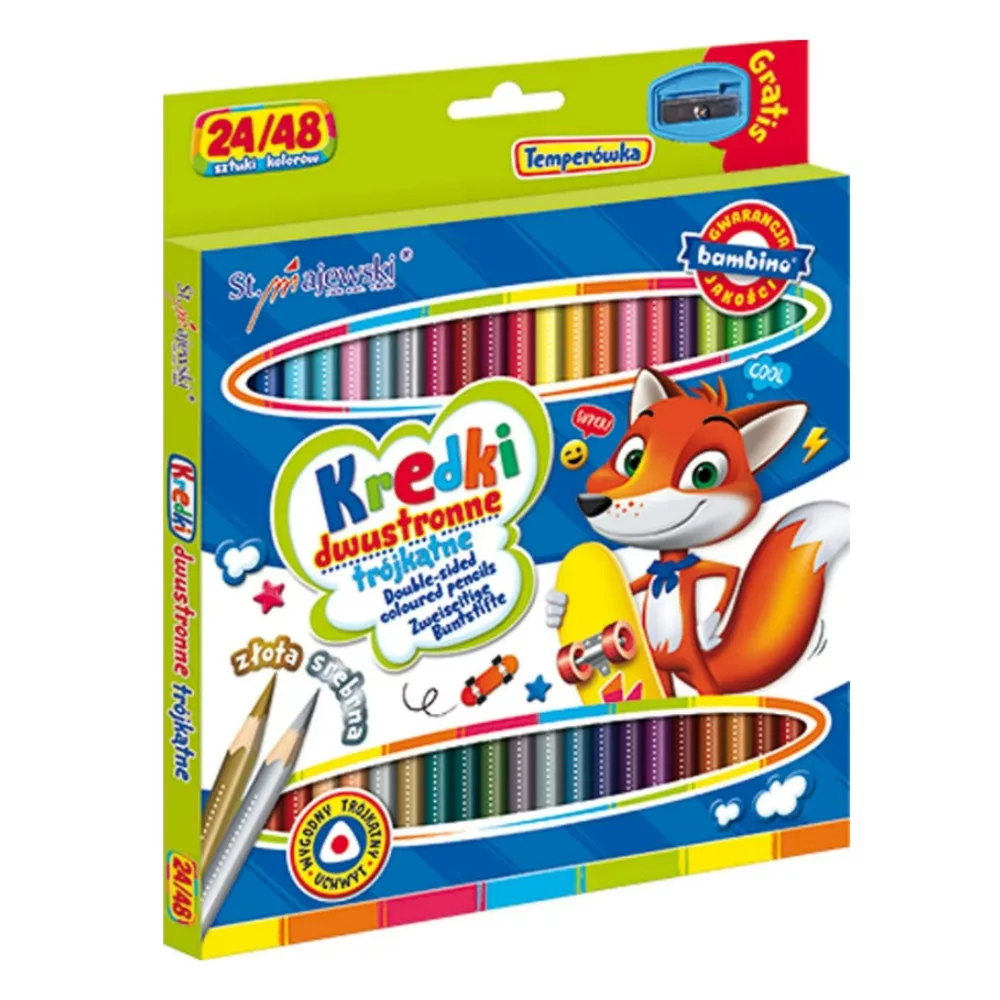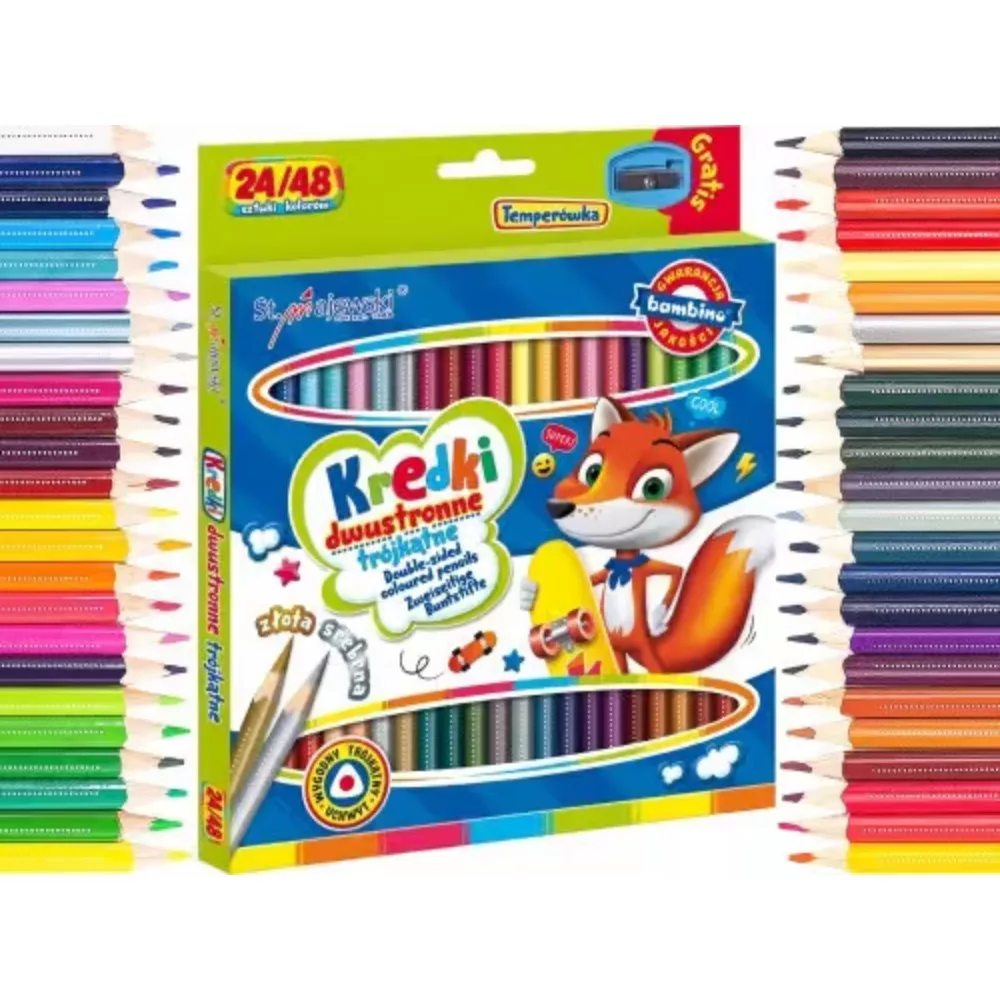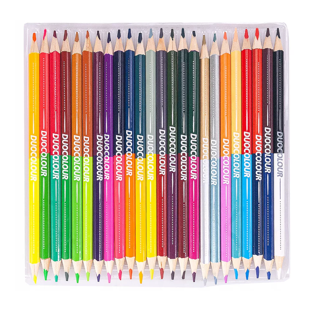 • Kétoldalas színes ceruzák: Minden ceruza két színt tartalmaz, így 48 különböző szín áll rendelkezésre a készletben – kétszer annyi lehetőség egy ceruzával!