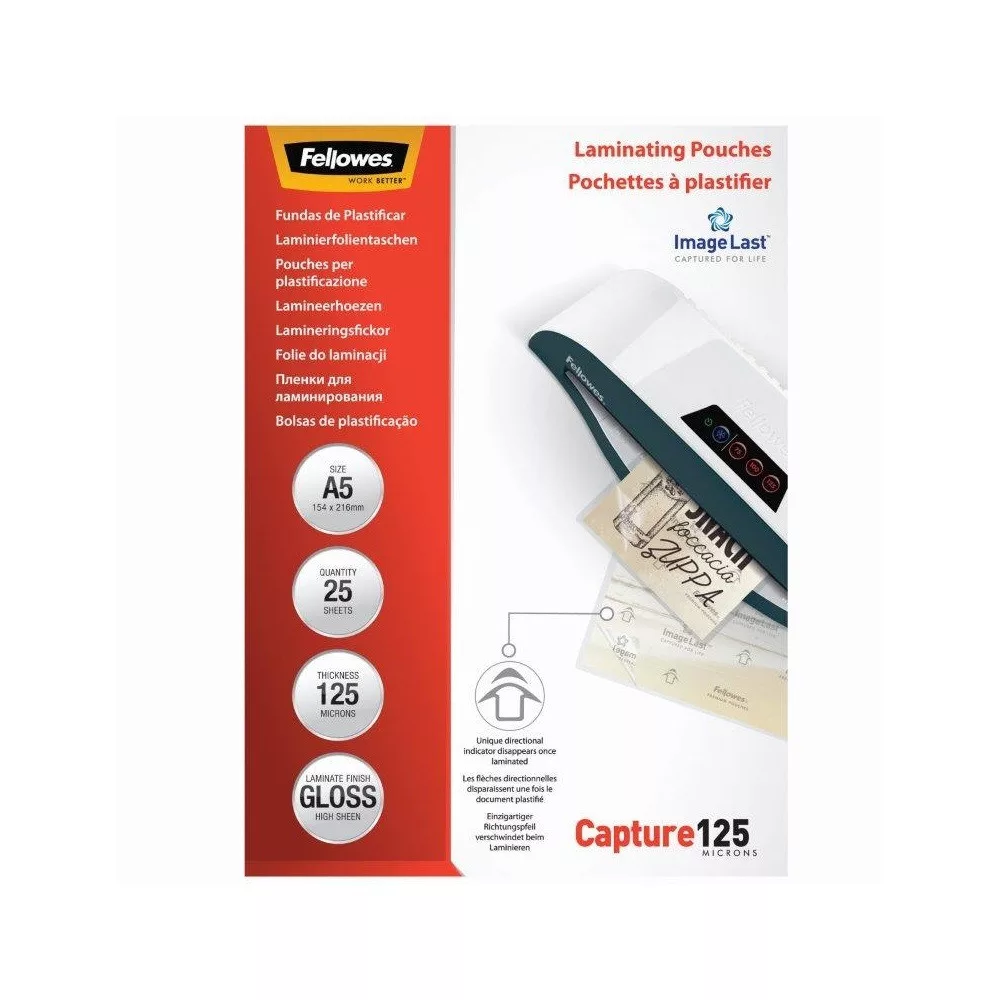 Lamináló fólia, A5, 125 mikron, fényes, 25 db/doboz, Fellowes®