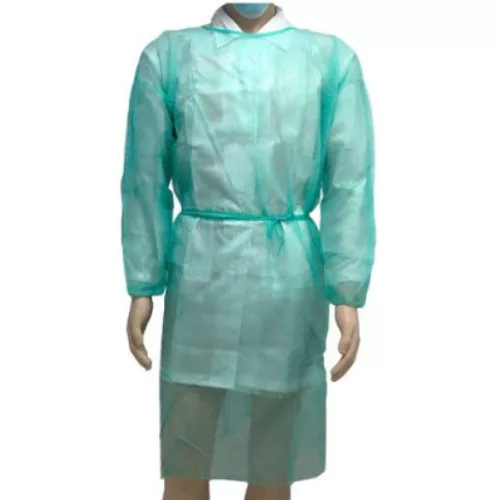 Anyag: polipropilén, nem szőtt textil (25 gsm) Jellemzők: körgumis mandzsetta, nyakrésznél hátul ill. derékban megköthető. Szín: zöld Méret: XL(120x140cm) Kiszerelés: 10 db/csom., 100 db/krt