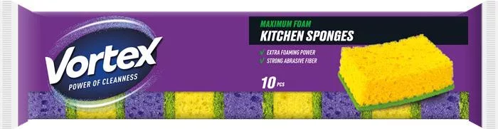 A VORTEX konyhai mosogatószivacsok a funkcionalitásra és a hatékonyságra összpontosítva tökéletes kiegészítői minden modern konyhának. Egyik oldalon makropórusos hab, a másikon erős tisztító, koptató hatású olasz szálak, amelyek könnyen eltávolítják a szennyeződéseket az edényekről. Nagy mennyiségű finom habot hoznak létre.