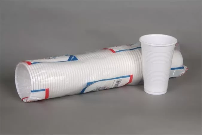 Egyszer használatos, eldobható műanyag pohár.