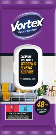 Nedves törlőkendő, fa- és műanyag felületre, 48 db, VORTEX