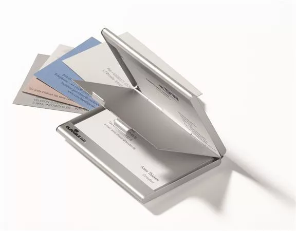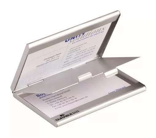Névjegykártyatartó tárca, fém, 20 db-os, DURABLE "CARD BOX DUO", ezüst