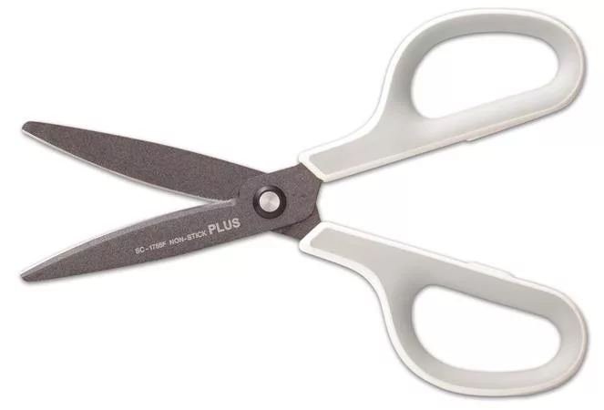 -az olló fluorbevonata ellenáll a ragadós anyagoknak, például a ragasztószalagnak és a ragasztó megtapadásának