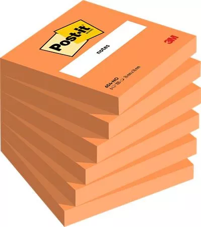 Öntapadó jegyzettömb, 76x76 mm, 6x100 lap, 3M POSTIT, narancs