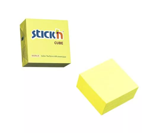 Öntapadó kockatömb, 76x76mm, 400 lap, STICK N, neonsárga
