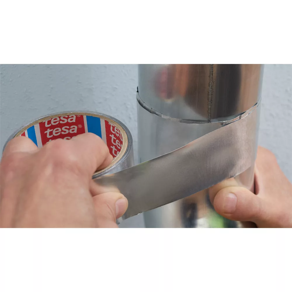 A tesa® aluminium szalag egy speciális védőszalag kiemelkedő tapadóerővel. Ez az egyedülálló ezüst szalag öntapadó bevonattal ellátott alumíniumból készült. Ideális vízvezeték-szerelő szalag és mindig készen áll a gyors és tartós javításokhoz. Ennek érdekében rendkívül hőálló, öregedésálló, valamint víz- és olajálló. Használja ezt az alumíniumszalagot bármilyen fémfelület védelmére, lefedésére, szigetelésére és javítására. Ideális fűtőrendszerek, tetők és esőcsatornák szakszerű javításához. Katalóguskód: 34306