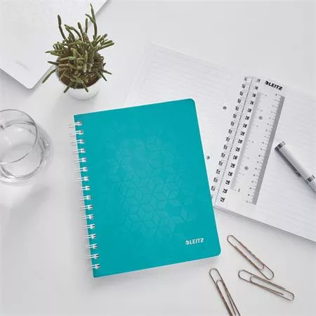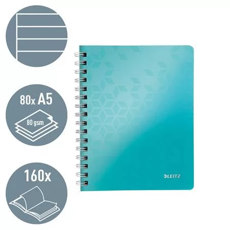 Spirálfüzet, A5, vonalas, 80 lap, LEITZ "Wow", jégkék