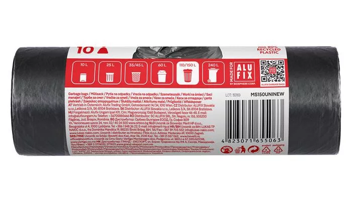 Minden Alufix szemeteszsák újrahasznosított műanyag felhasználásával készül. Amikor Alufix szemeteszsák mellett dönt, a Föld erőforrásainak körforgását támogatja.