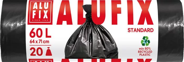Szemeteszsák, 60 l, 20 db, 64x71 cm, 15 µ, ALUFIX, fekete