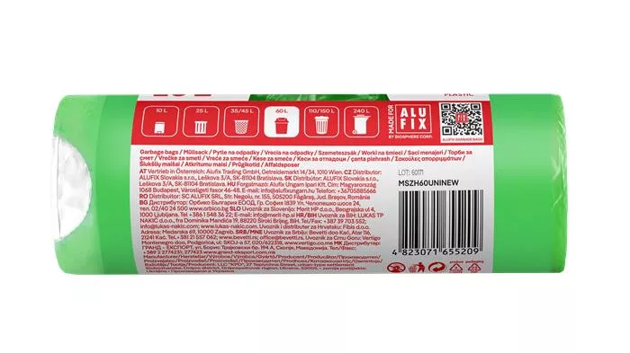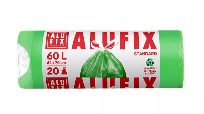 Minden Alufix szemeteszsák újrahasznosított műanyag felhasználásával készül. Amikor Alufix szemeteszsák mellett dönt, a Föld erőforrásainak körforgását támogatja. feltűnő színű, praktikus zárószalaggal ellátott szemeteszsákok.