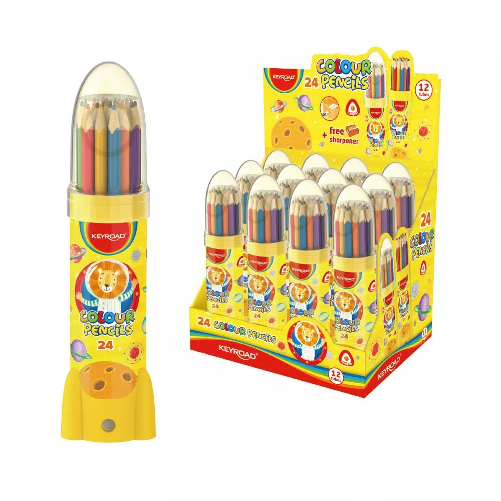 Színes ceruza készlet háromszögletű, rakéta palackban Keyroad 24 klf. szín