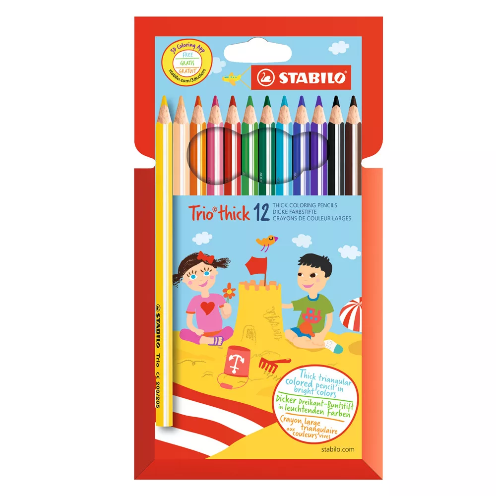 Színes ceruza készlet, háromszögletű vastag, 203/12 Stabilo TRIO 12 klf. szín