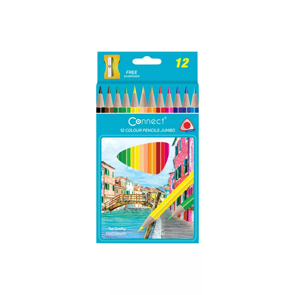 Színes ceruza készlet, háromszögletű vastag Connect 12 klf. szín