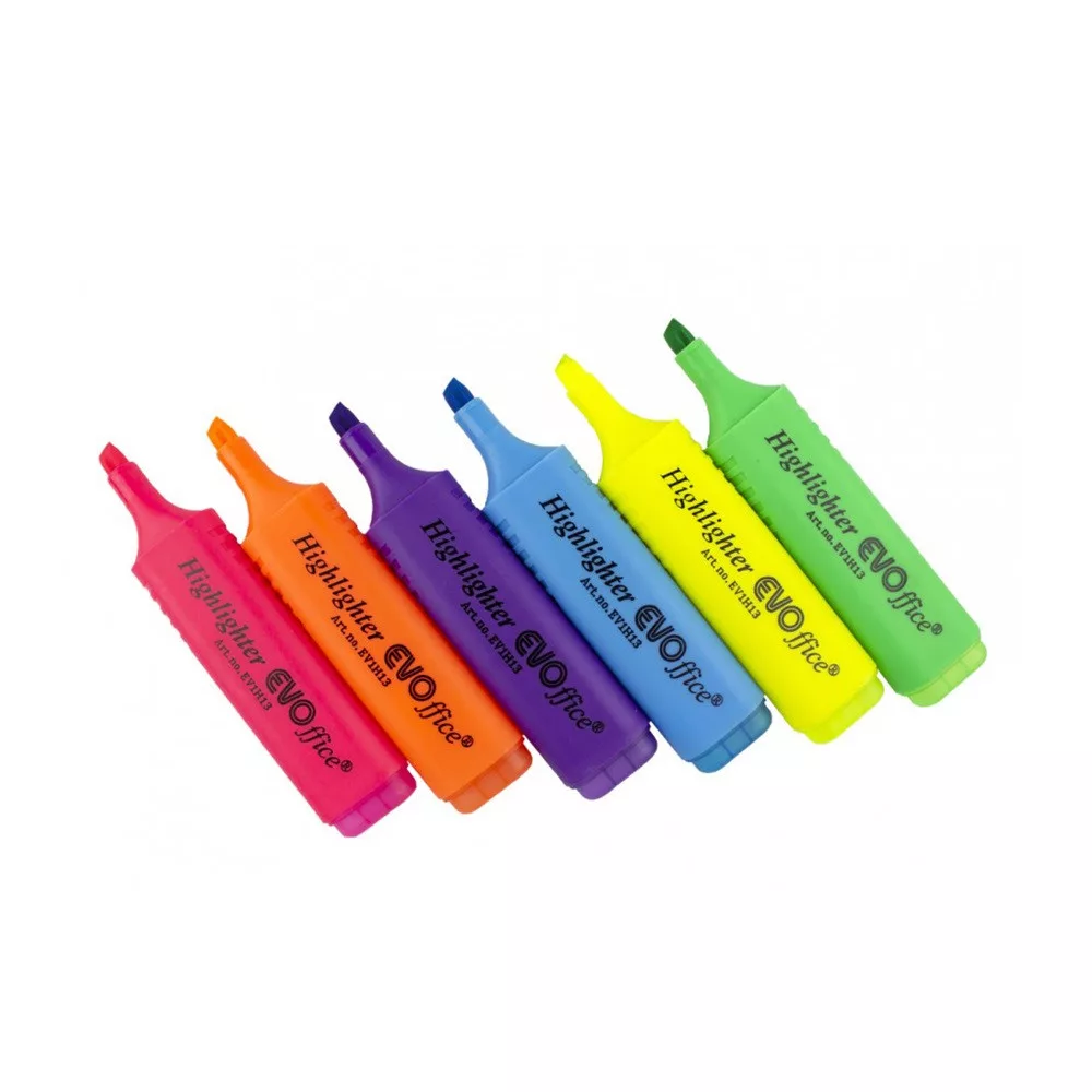 Speciális fluoreszkáló festékkel töltött szövegkiemelő. A kiemelt szöveg fénymásolható,faxolható. Klippel ellátott kupak, mely légmentesen zár. Festék színével megegyező kupak és testszín. Vonalvastagság: 1-5 mm. Csúszásgátló fogórész.