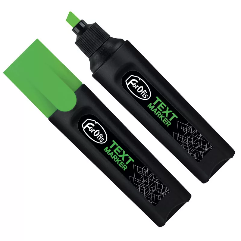A Forofis szövegkiemelők élénk, fluoreszkáló színekkel és vágott heggyel készülnek. Egyenletes vonalvastagság, nem fakul.