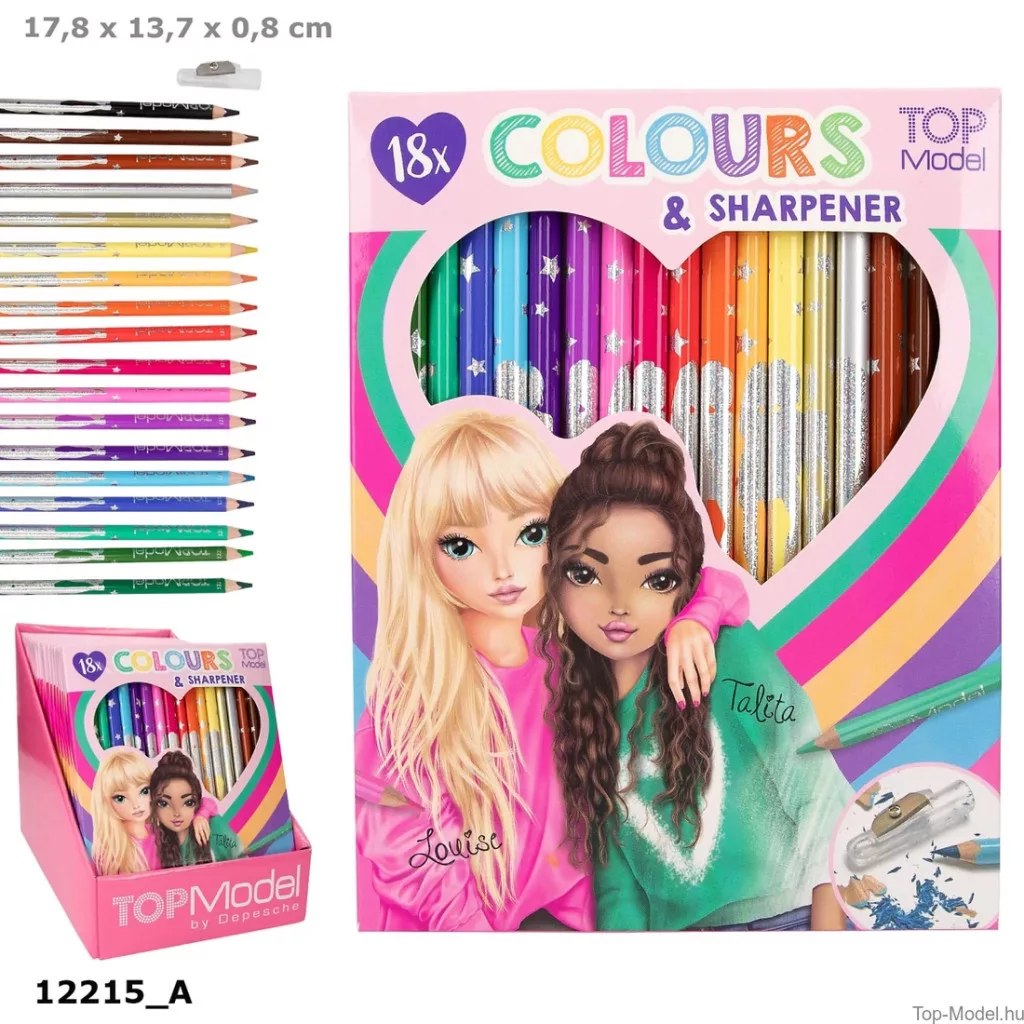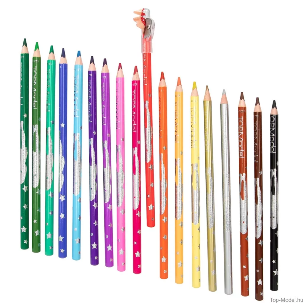 A TOPModel 18 db színesceruza hegyezővel egy igazi kincsesbánya a kreativitásodhoz.
