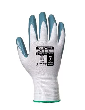 Védőkesztyű, nitril, M méret, "Flexo Grip" szürke-fehér
