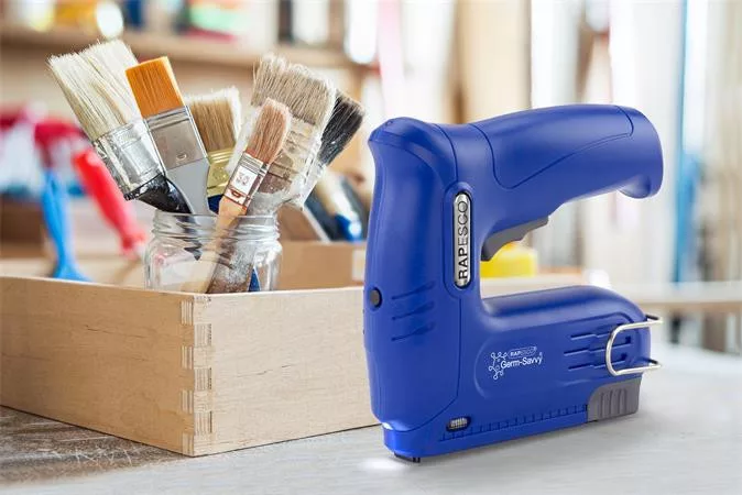 Tűzőpisztoly, vezeték nélküli, elektromos, USB, RAPESCO Germ-Savvy "T12-USB", kék