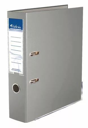 Iratrendező, 75 mm, A4, PP/karton, élvédő sínnel, VICTORIA OFFICE, "Basic", szürke