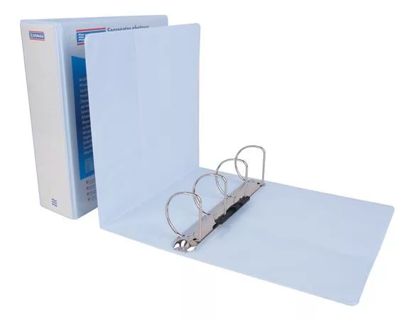 Gyűrűs könyv, panorámás, 4 gyűrű, D alakú, 100 mm, A4, PP, DONAU, fehér