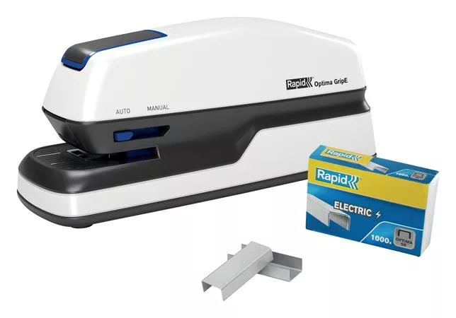 A Rapid GripE elektromos tűzőgép kényelmes tűzést biztosít egyszerre akár 20 lap (80 g/m2) tűzéséhez, így időt takarít meg otthon vagy a munkahelyen.