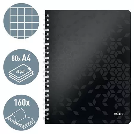 Spirálfüzet, A4, kockás, 80 lap, LEITZ "Wow", fekete